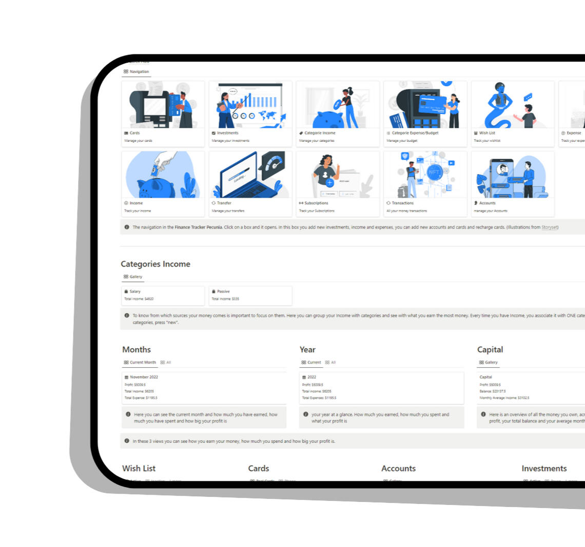 With the Finance Tracker Pecunia you won't miss anything. The All-In-One dashboard offers you a complete system without compromises.